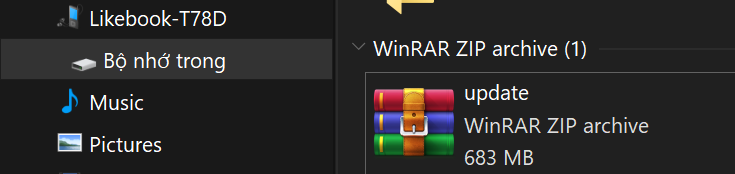 nhớ trong và copy file update.zip và dán trực tiếp vào thư mục này